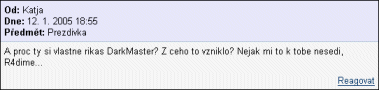 Svůj internetový deníček jsem psal pod přezdívkou DarkMaster. Ve svém blogu jsem neměl žádnou zmínku