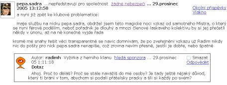 Vzhledem k tomu, ze (...) zcela opravnene argumentuje i "neopravnenym pouzitim log Brouzdej.cz v zahlavi", odstrante prosim do 12 hodin inkriminovane logo, jinak budu nucen klub smazat.